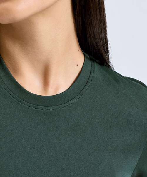 Wicking fabric. Stretch. Crew Neck. Short Sleeve. Lightweight. Twin-needle stitching on hem and arms. UPF 40+.Washing Instructions